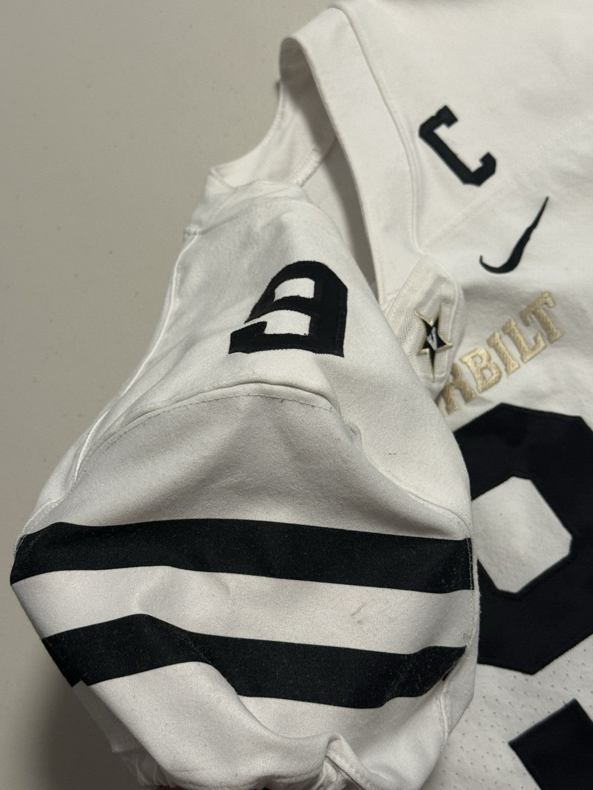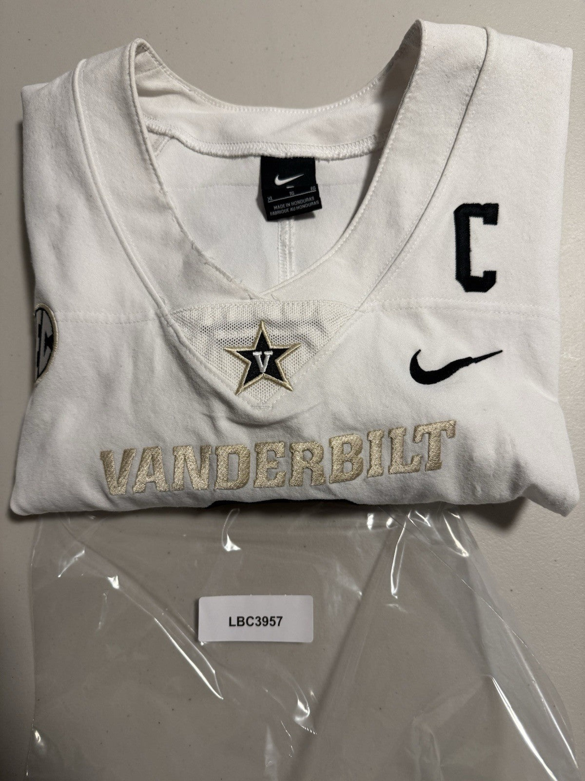 Rare Vandy jersey from the program, used several seasons ago. This particular jersey comes with the "C" Captains patch, SEC patch and Vandy patches.