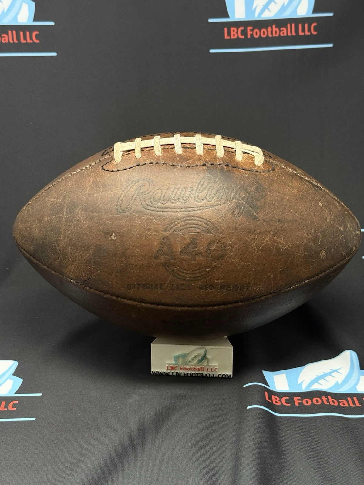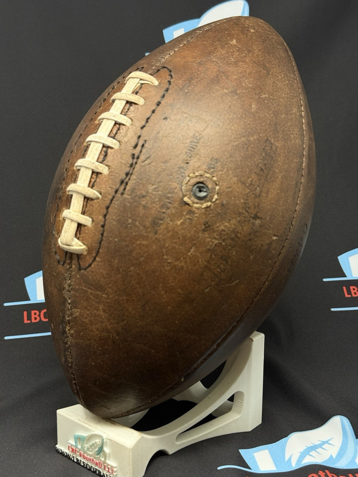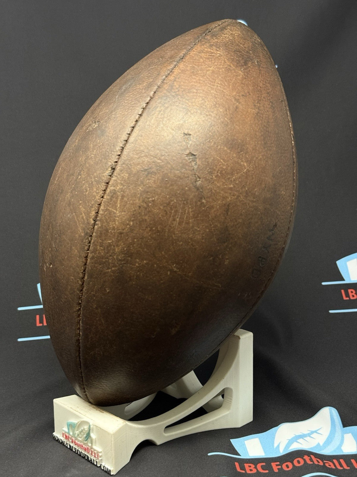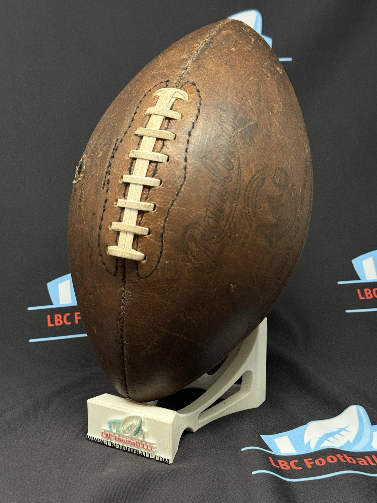 This vintage football was recently given a brand-new bladder and now holds air without issue. The leather panels were recently brushed and conditioned as well. The "NYPD" logo comes branded on the leather panel and original Rawlings logos are still intact on the panels as well.