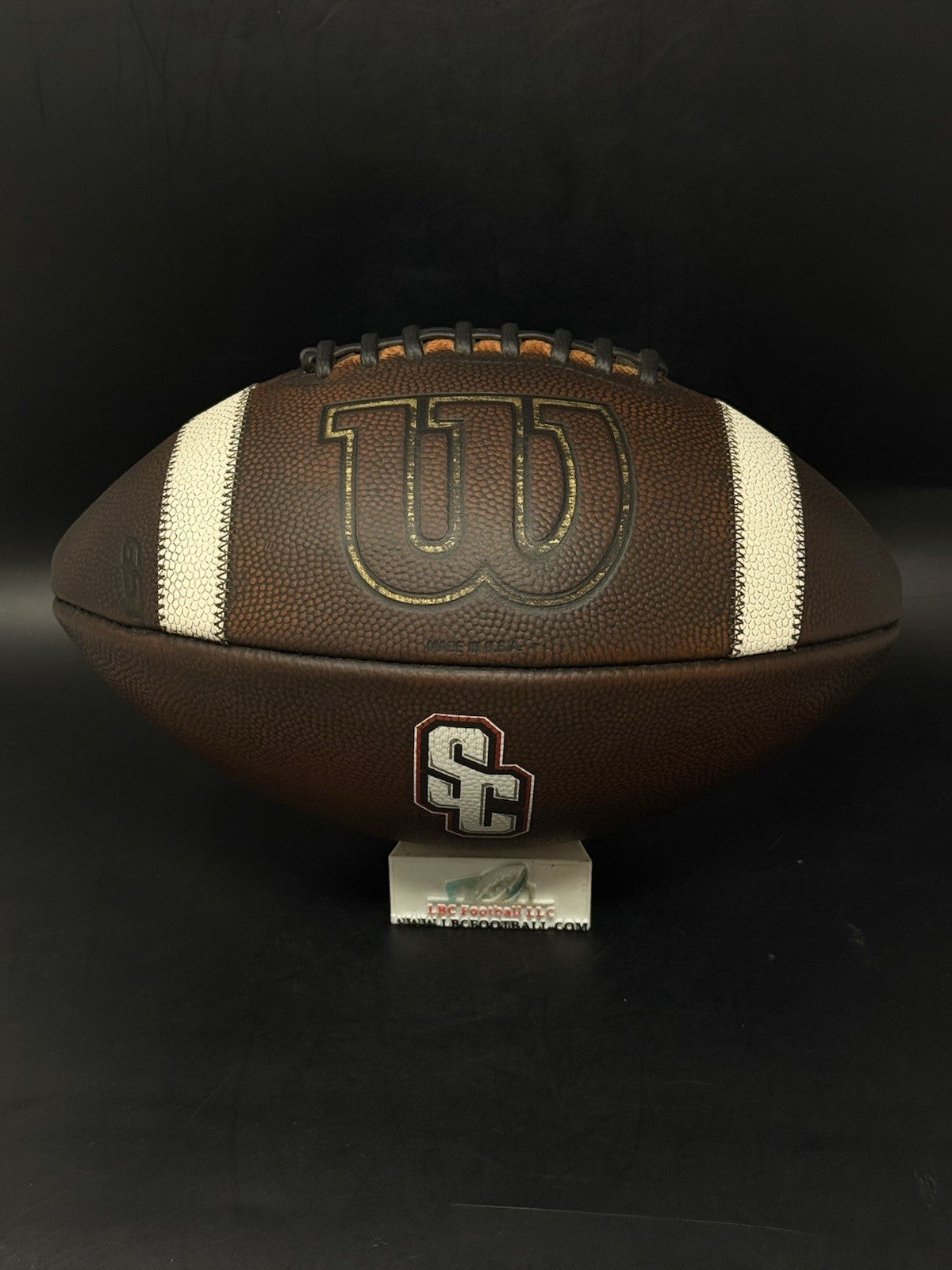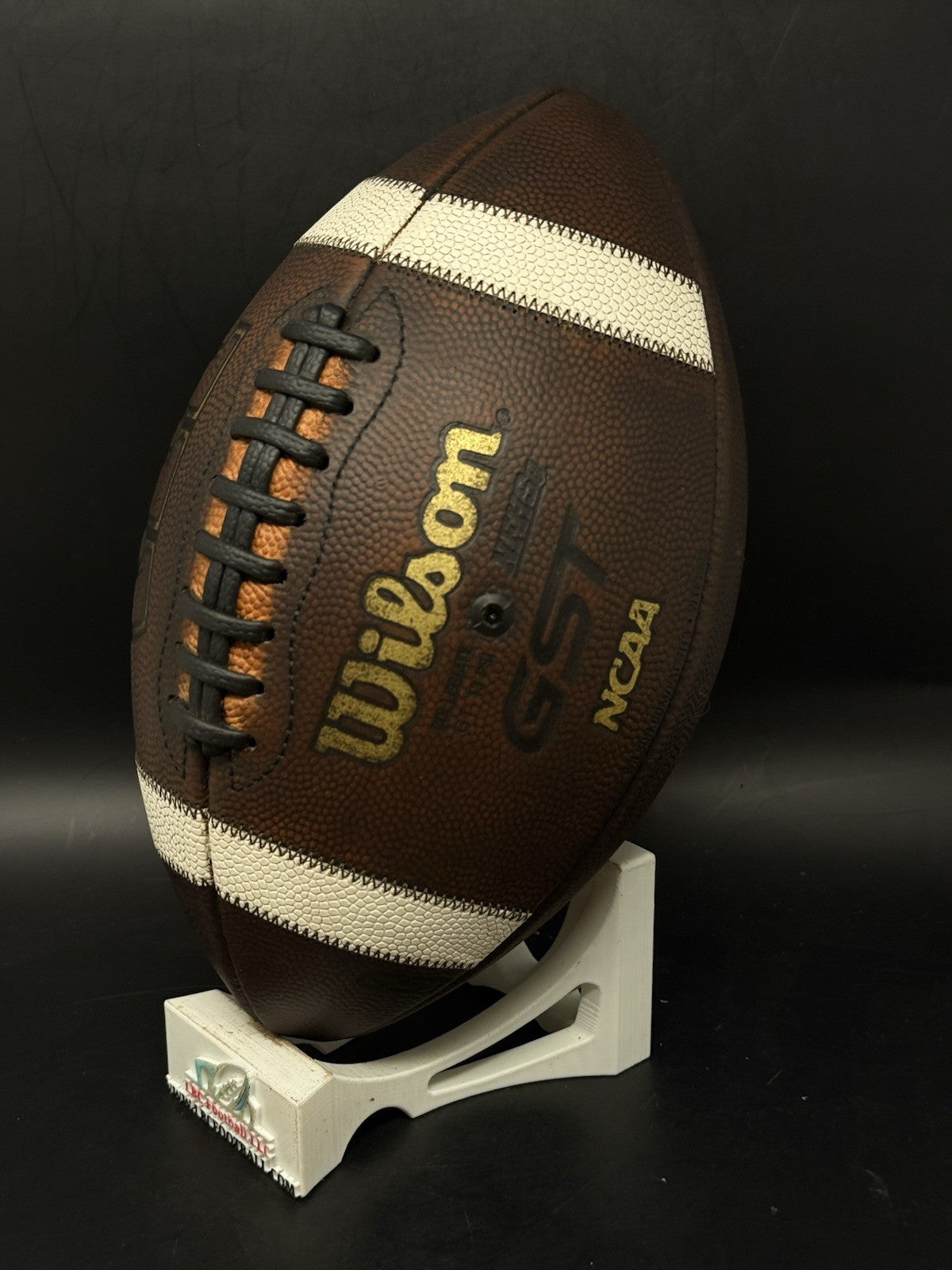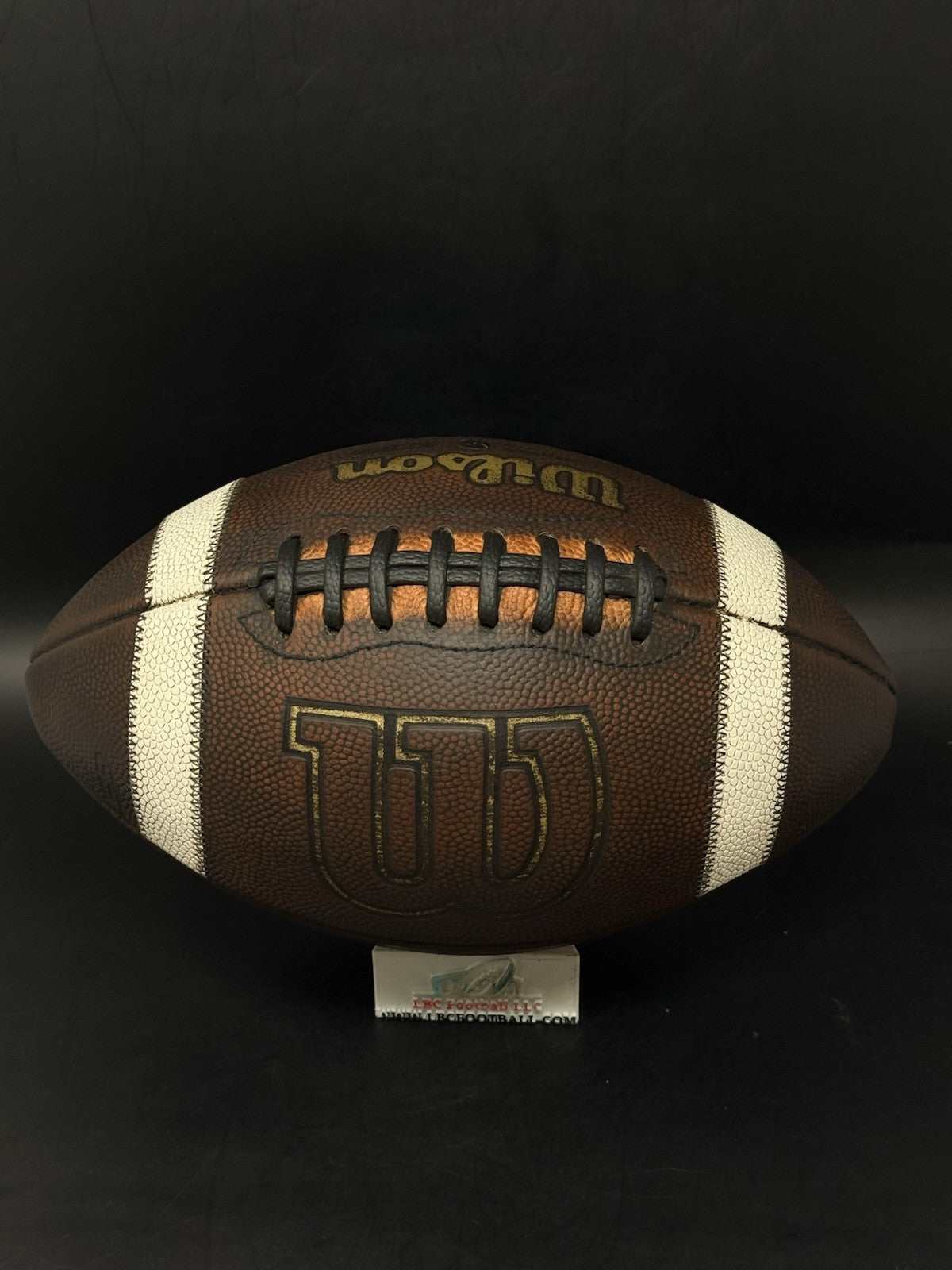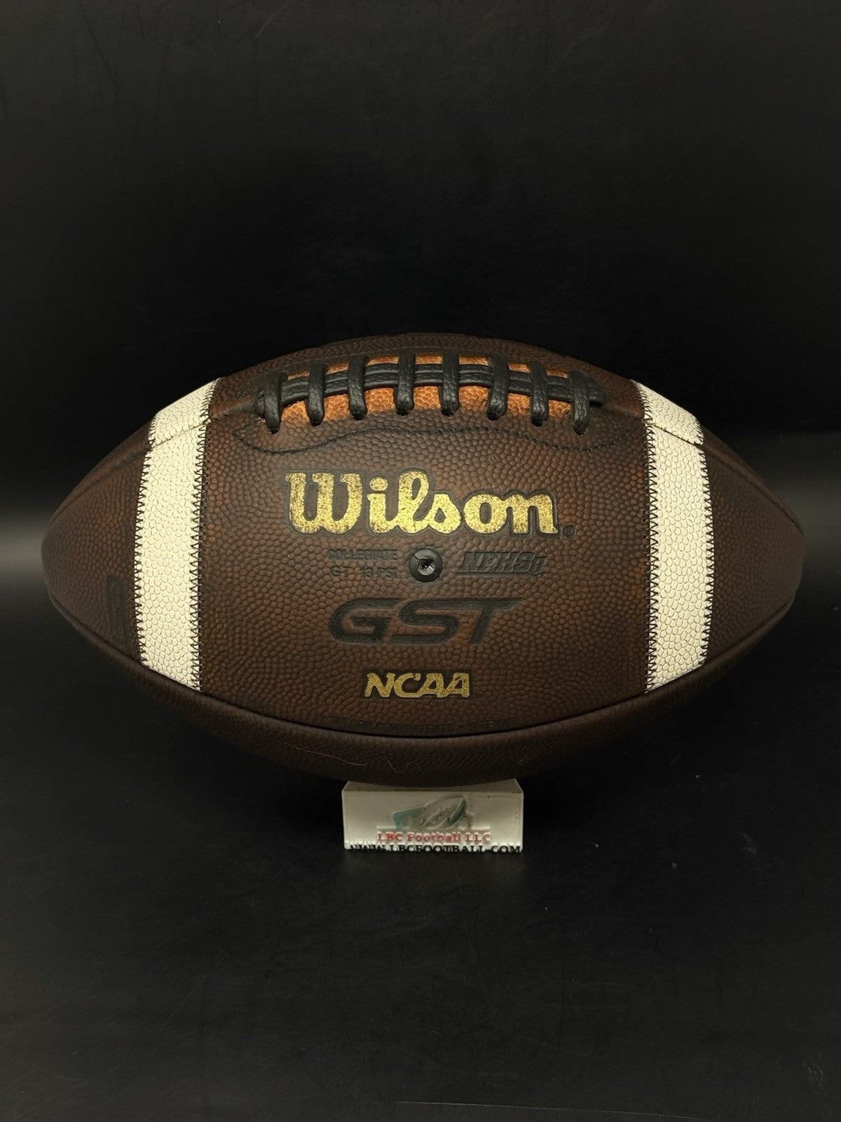 Brand New Wilson GST Full-Size NCAA / NFHS Regulation Size Leather Football black tacky pebble lacing and embossed logo pattern. This ball was recently fully game prepped and is ready for training or game usage on day 1. With continued maintenance during usage, this ball will continue to darken and soften overtime.