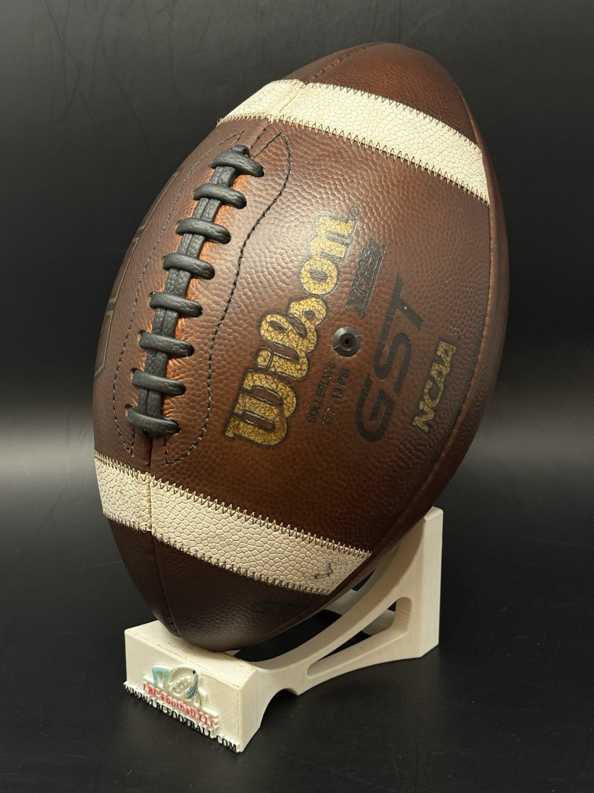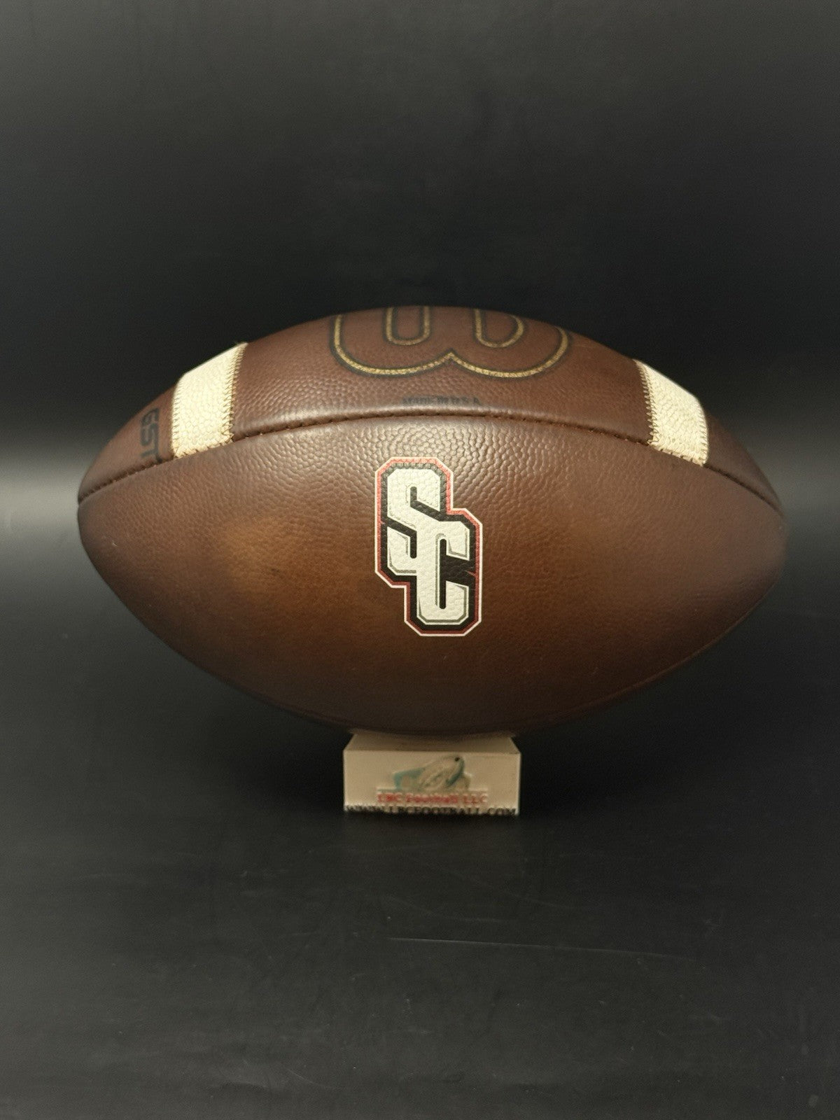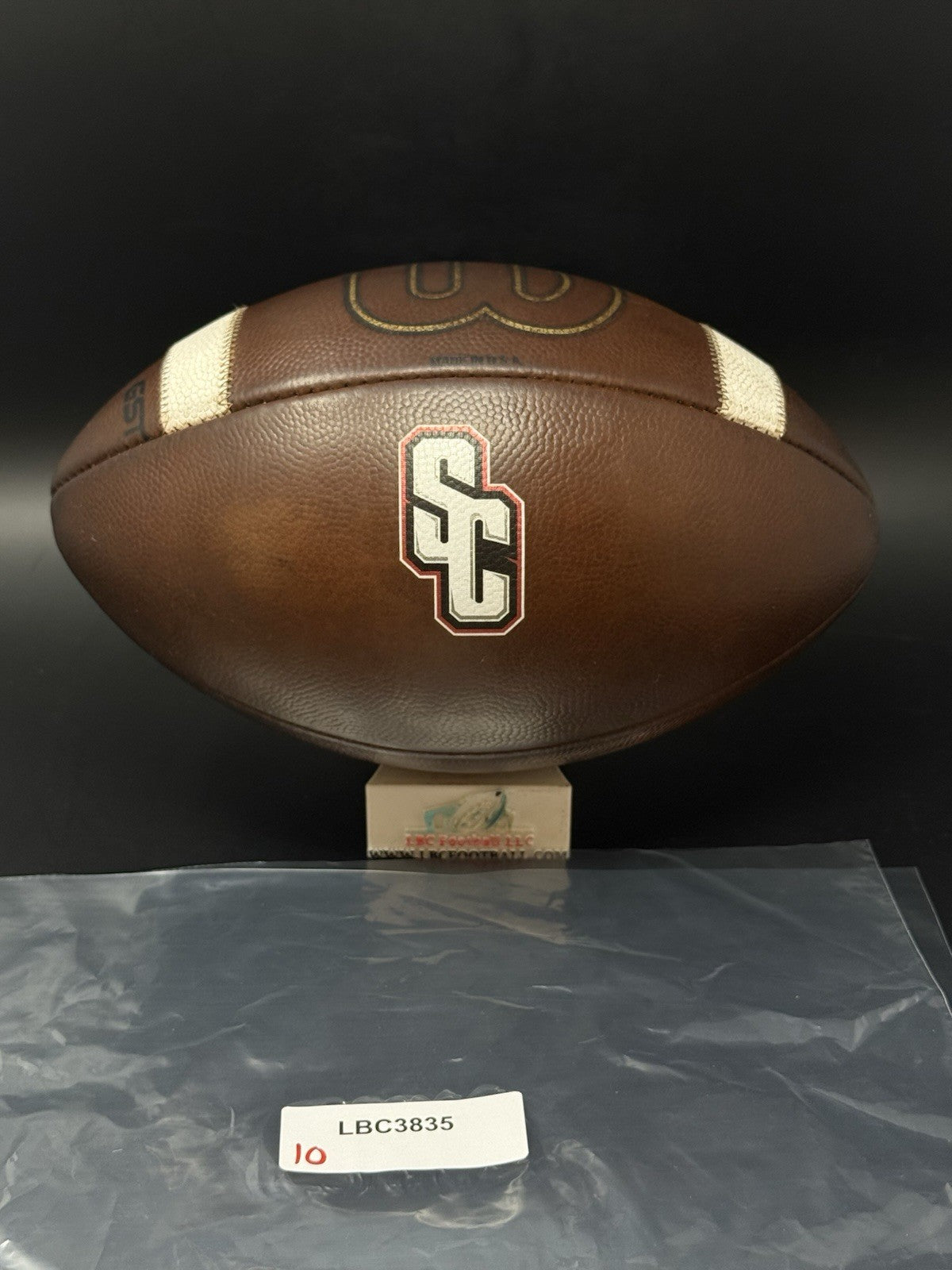 Wilson GST full-size used leather football with SCHS team logo. Recently fully game prepped and tacked by LBC Football and ready for training or usage on Day 1.