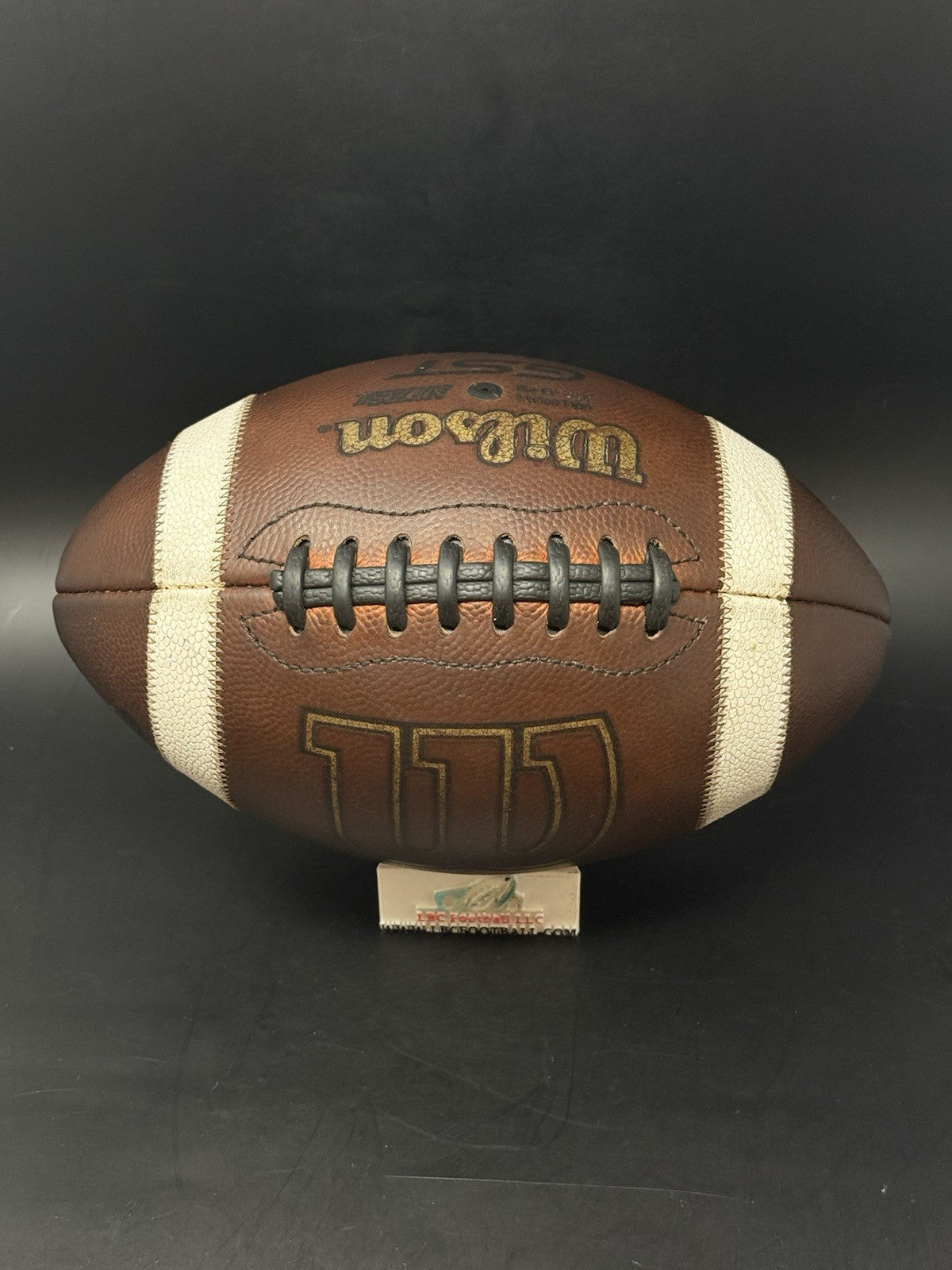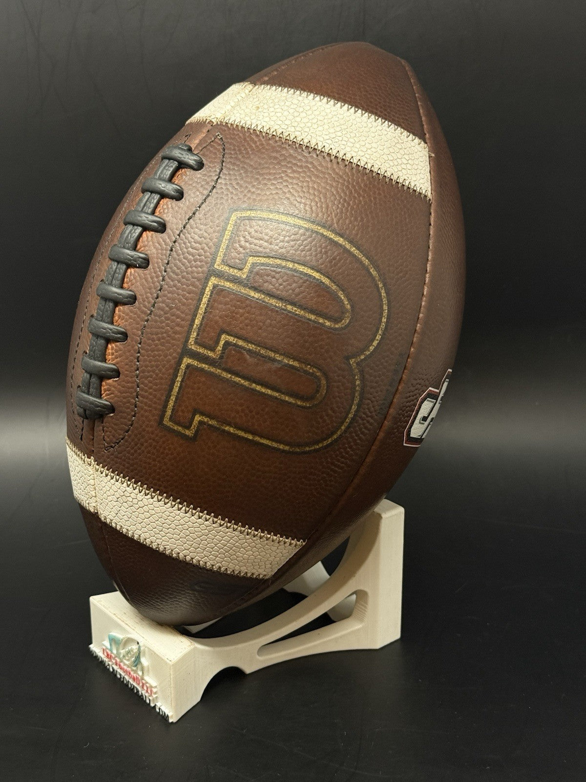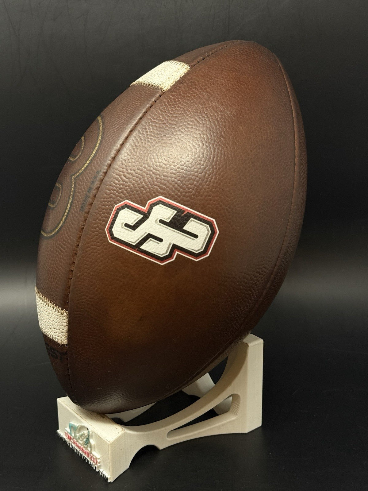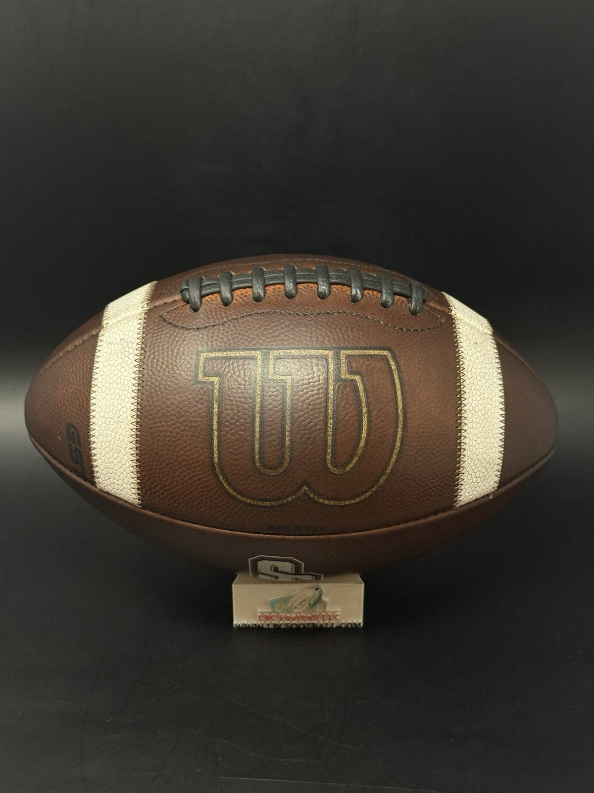 Wilson GST full-size used leather football with SCHS team logo. Recently fully game prepped and tacked by LBC Football and ready for training or usage on Day 1.