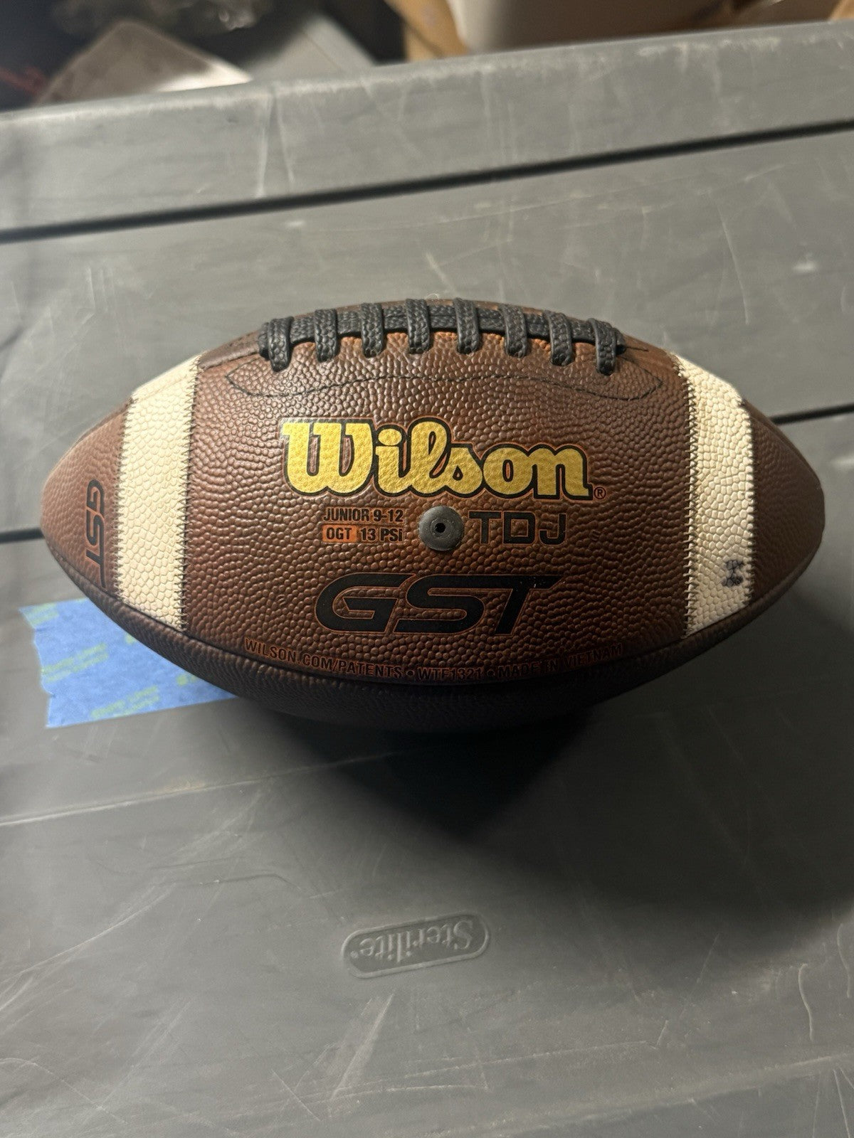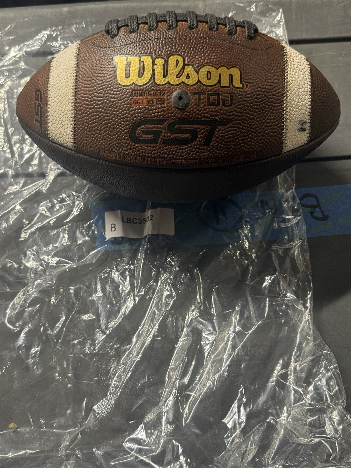 Wilson GST TDJ Junior Size 8 (Ages 9-12) Leather Football that was just recently fully game prepped by LBC Football and ready for training or game usage right out of the box. This Football was very minimally, used prior to being prepped and has a lot of life left in it.