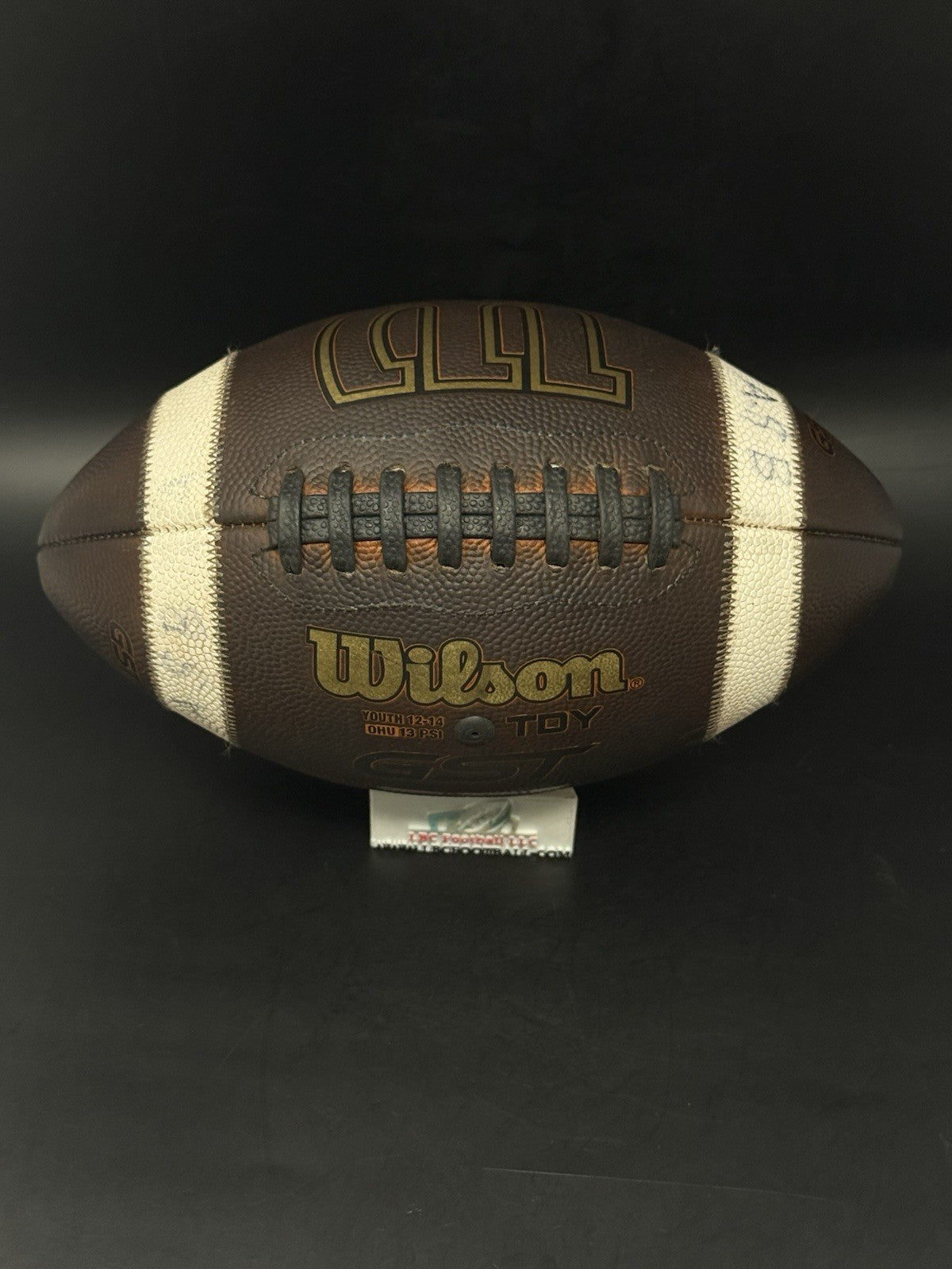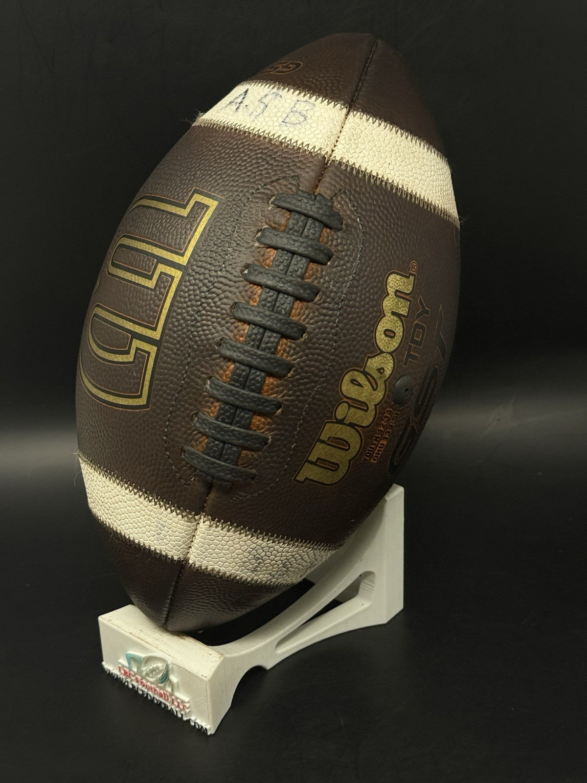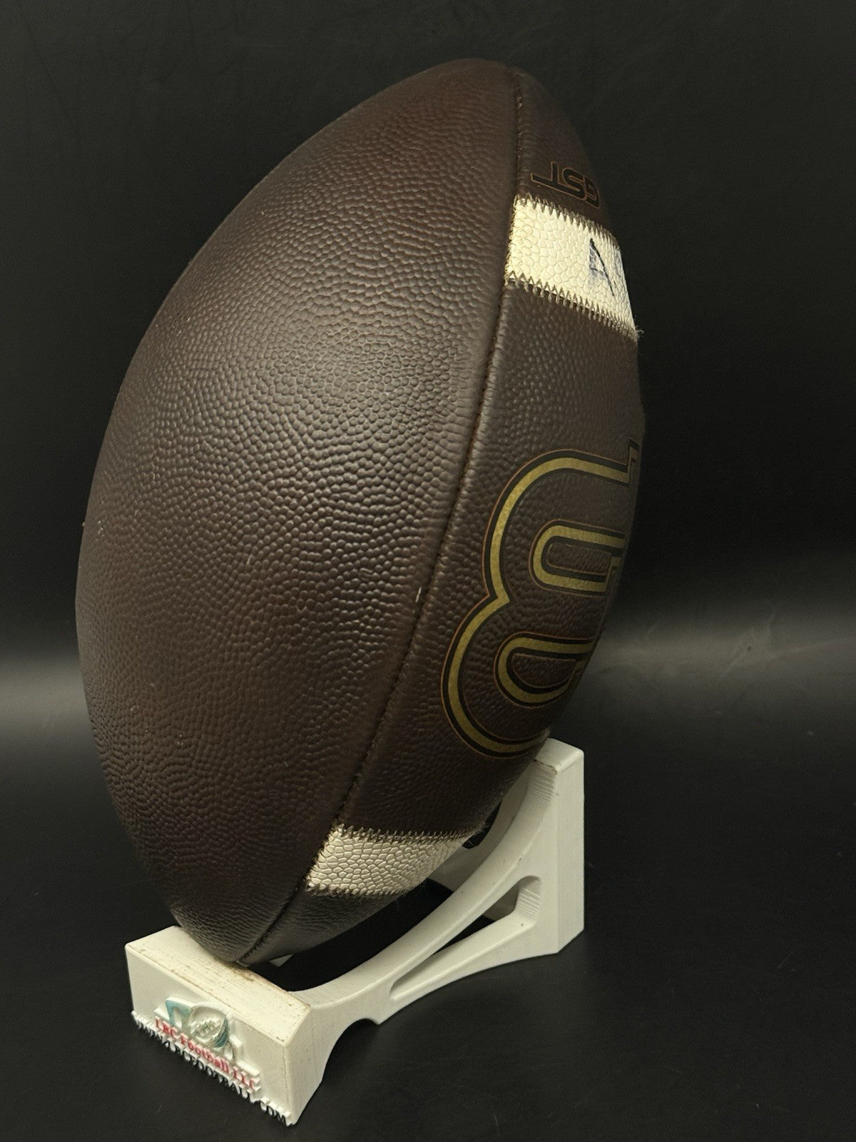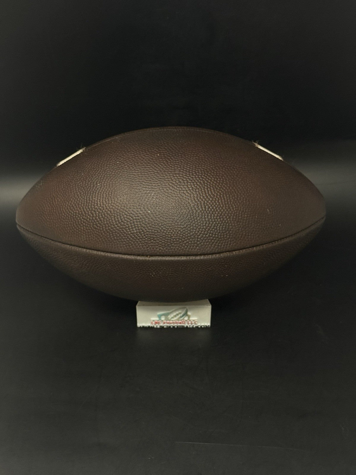 Wilson GST TDY Youth Size 8 (Ages 12-14) Leather Football that was just recently fully game prepped by LBC Football. Prior to being game prepped the spa was used for a very short period of time and is still in like new condition with exception to the previous owner marking the white stripes.