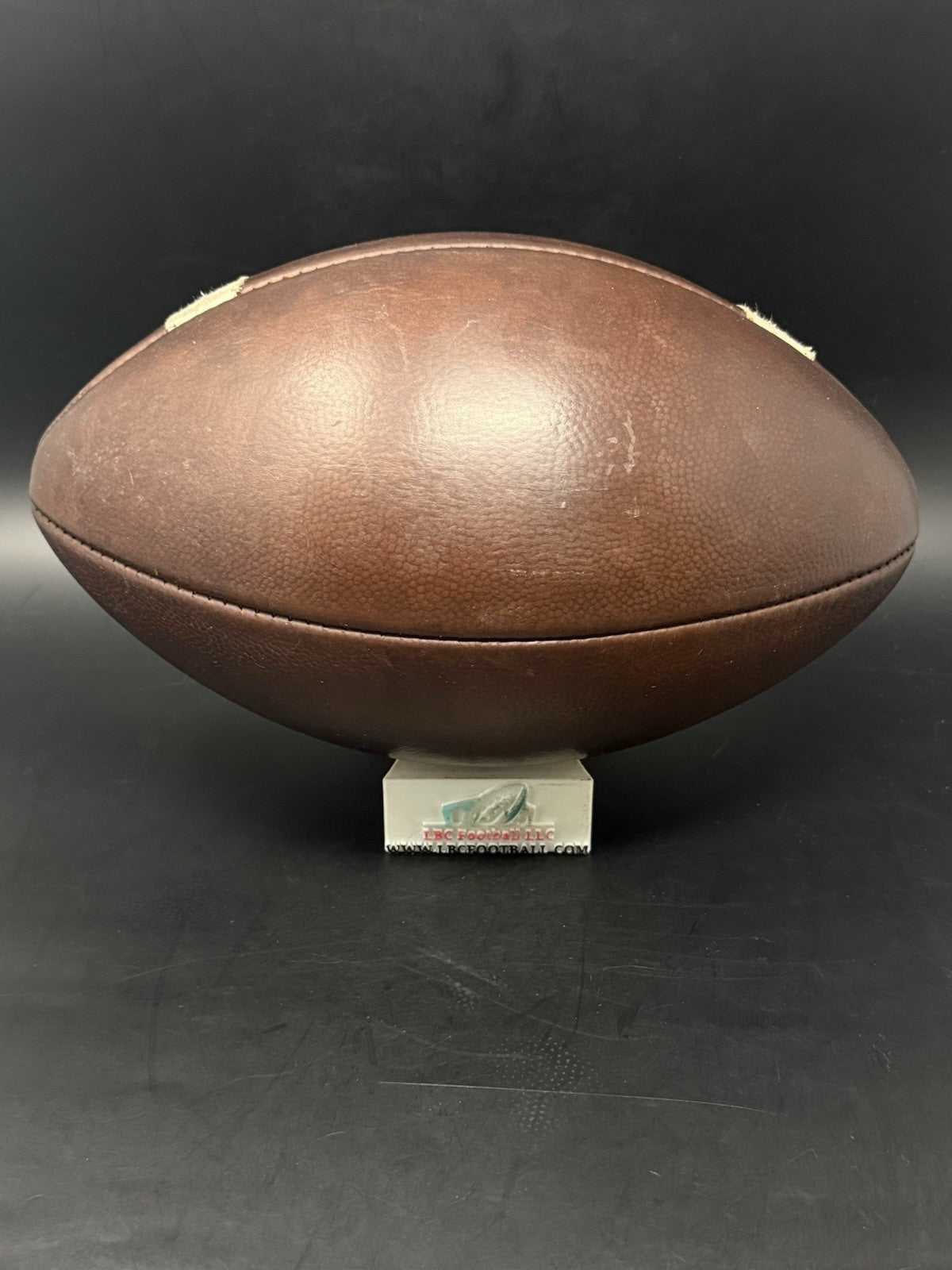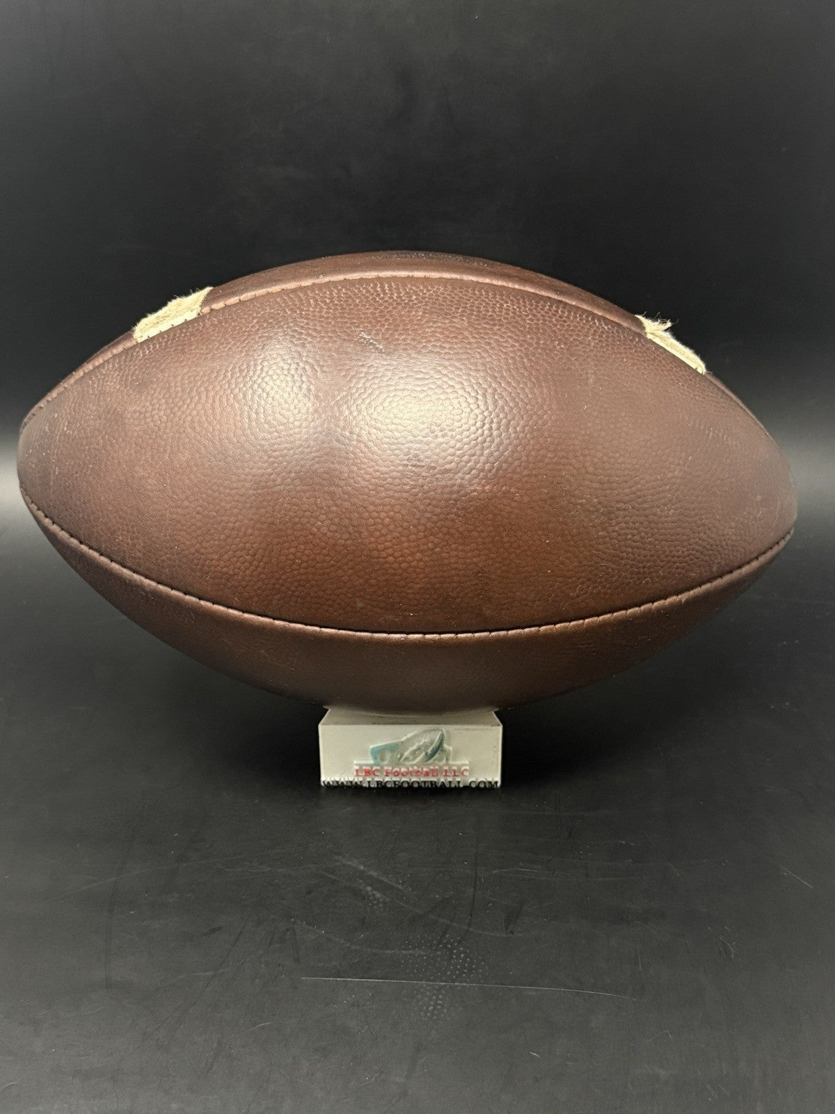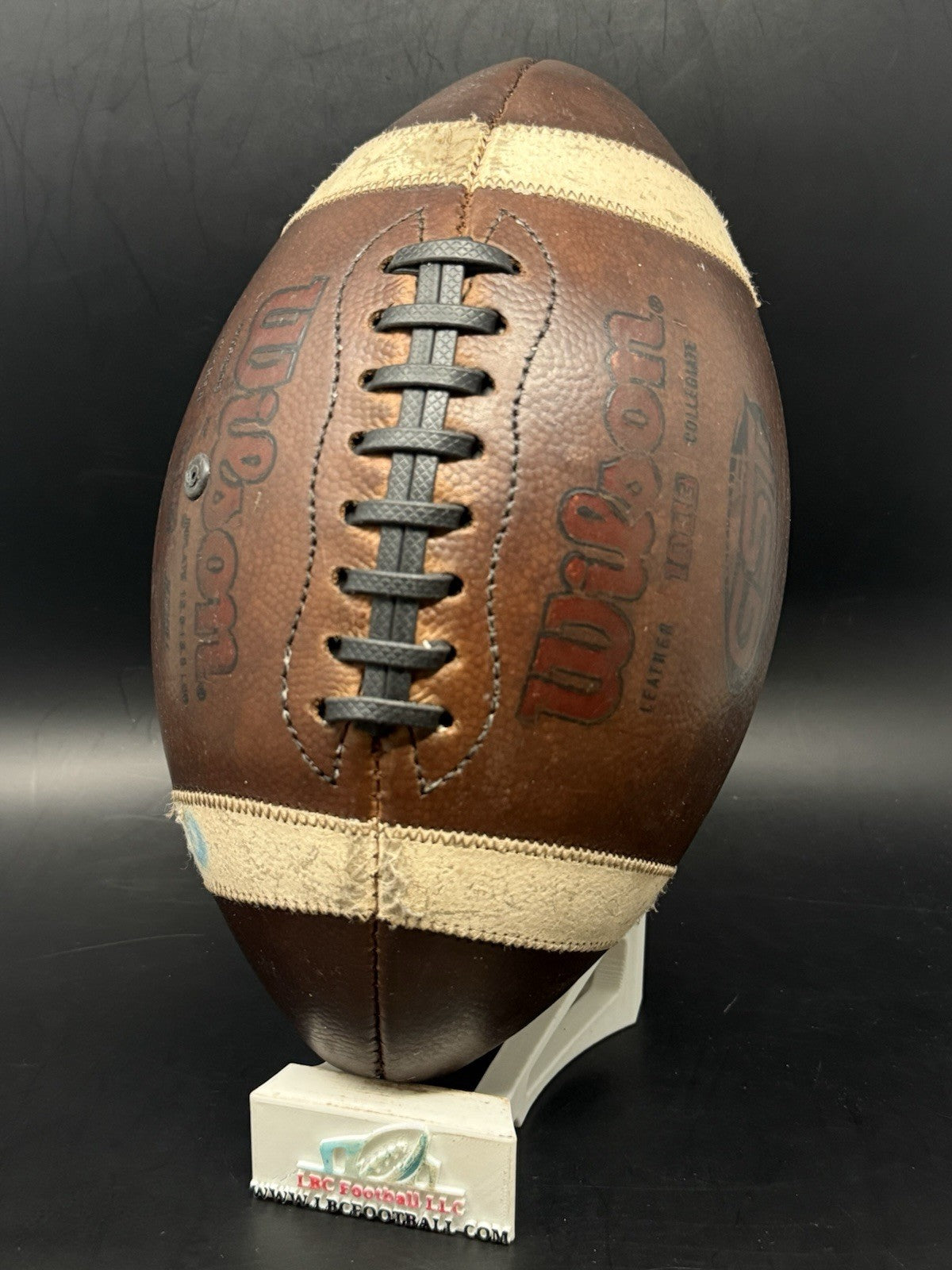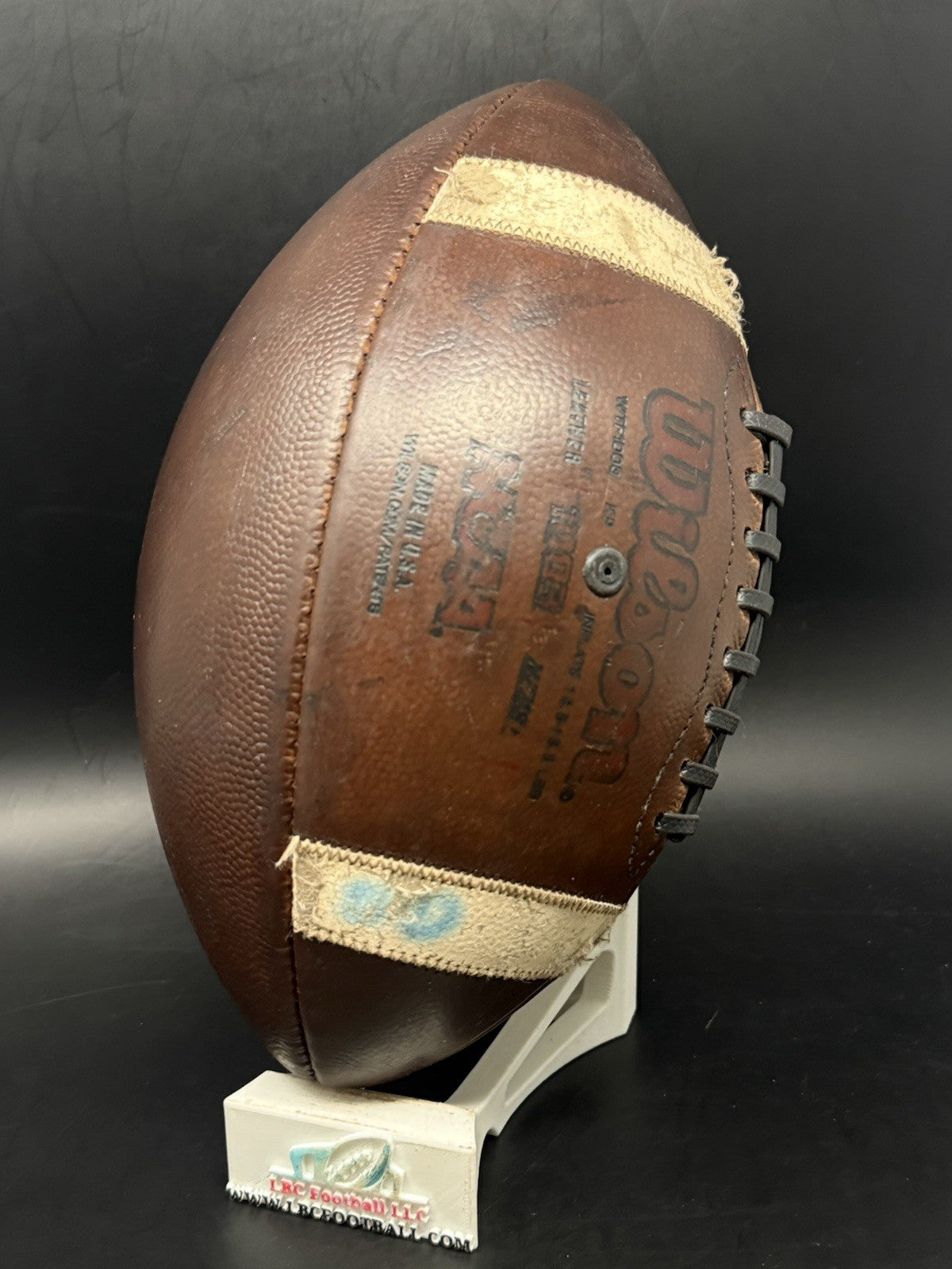 Used Wilson GST QB Football. Recently comes with a brand-new bladder and Black Tacky Diamond Pattern lacing. The panels are smooth due to prior usage and the leather was just re-conditioned, tacked and brushed. Sewn on white stripes have some fraying. Perfect for any training or practice sessions.